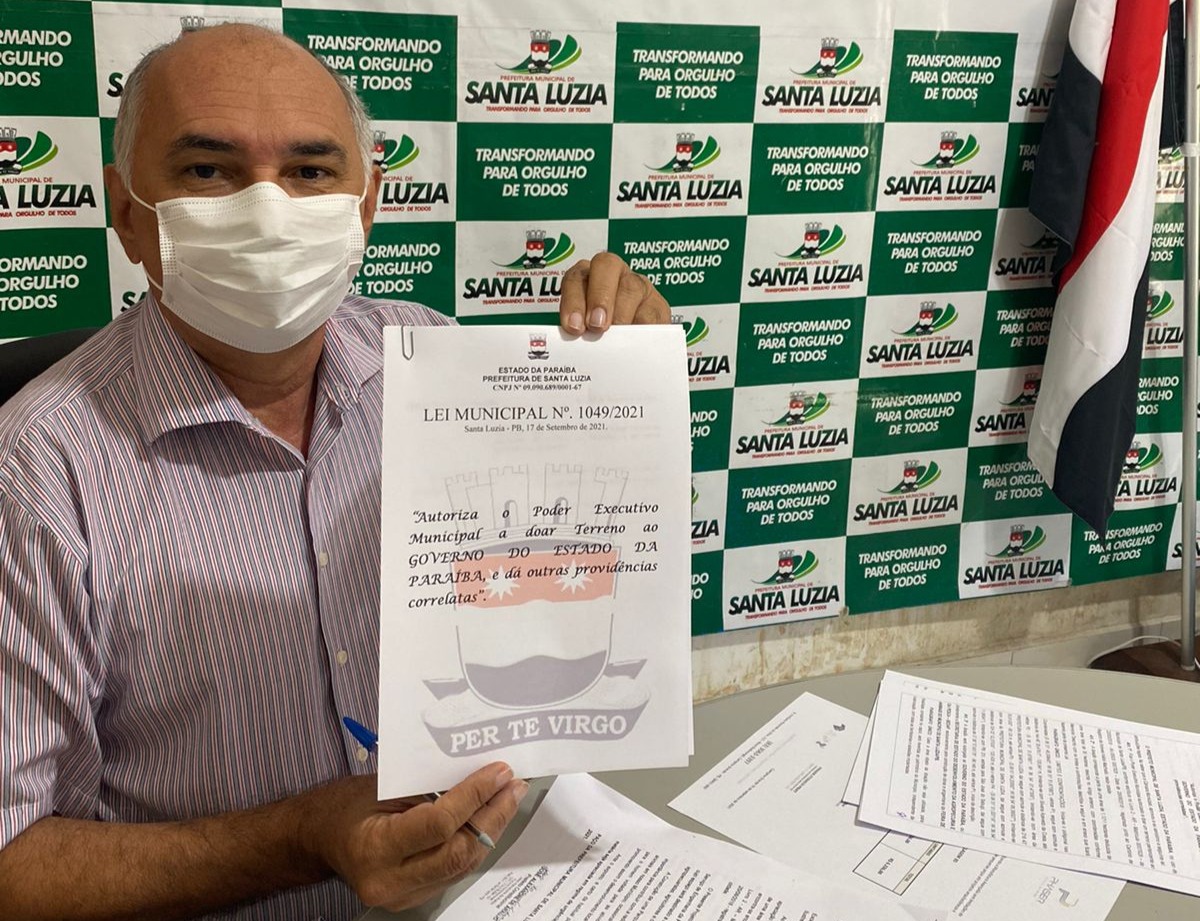 O prefeito de Santa Luzia, José Alexandre de Araújo – Zezé, sancionou nesta sexta-feira (17) a Lei Municipal Nº 1049/2021, que autoriza a doação de terreno público do município ao Governo do Estado. A cessão corresponde a uma área de 1,12 hectares, deduzida de uma área total de 30 hectares, destinada para construção de parque específico para abrigar a feira de animais da cidade.A Lei Municipal é de autoria do próprio Poder Executivo e recebeu o aval e aprovação por unanimidade na Câmara de Vereadores. De acordo com o prefeito Zezé, o governo municipal é parceiro de qualquer ação ou iniciativa que venha beneficiar a população, sobretudo, na geração de emprego e renda em Santa Luzia.